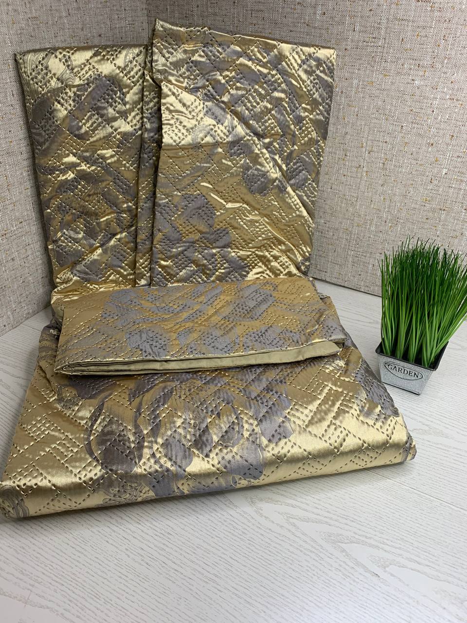 Перетворіть атмосферу вашої спальні з нашим стьобаним покривалом. Його елегантний дизайн гармонійно доповнить інтер'єр, надаючи приміщенню неповторного стилю та затишку.