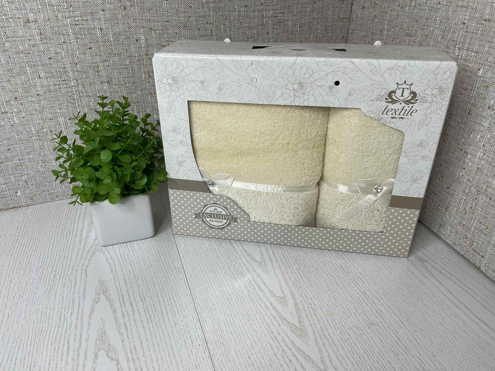 Набір махрових рушників (2 шт.) "Алмаз молочний"