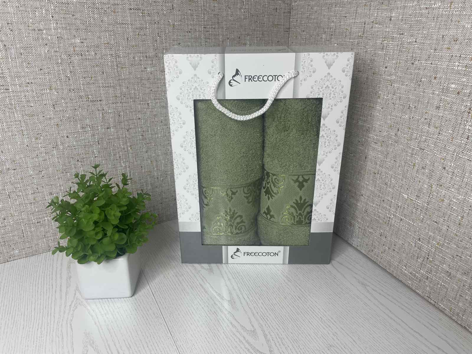 Набір махрових рушників (2 шт.) FREECOTON "Вінтаж зелений"