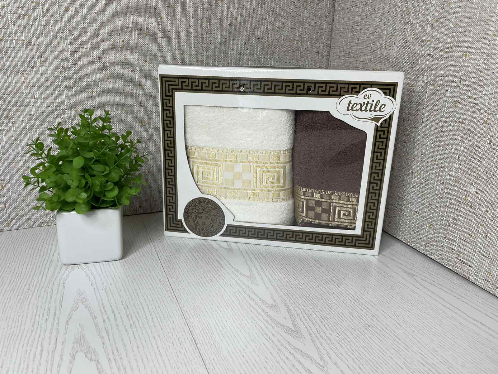 Набір махрових рушників (2шт) "Греція біло-коричневі"