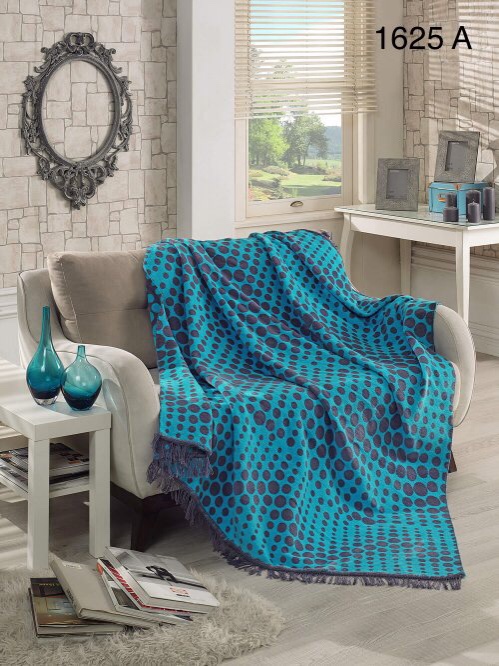 Плед бавовняний Sarar Battaniye 200х240см. "№1625А" Горох на блакитному.