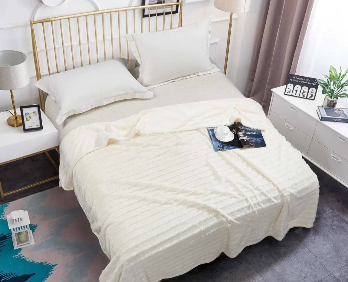 Плед плюшевий "Вії" 200х220 см. "Молочний"