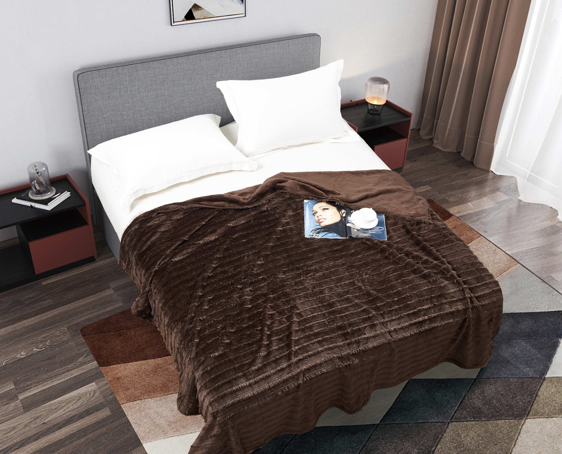 Плед плюшевий "Вії" 200х220 см. "Шоколад"