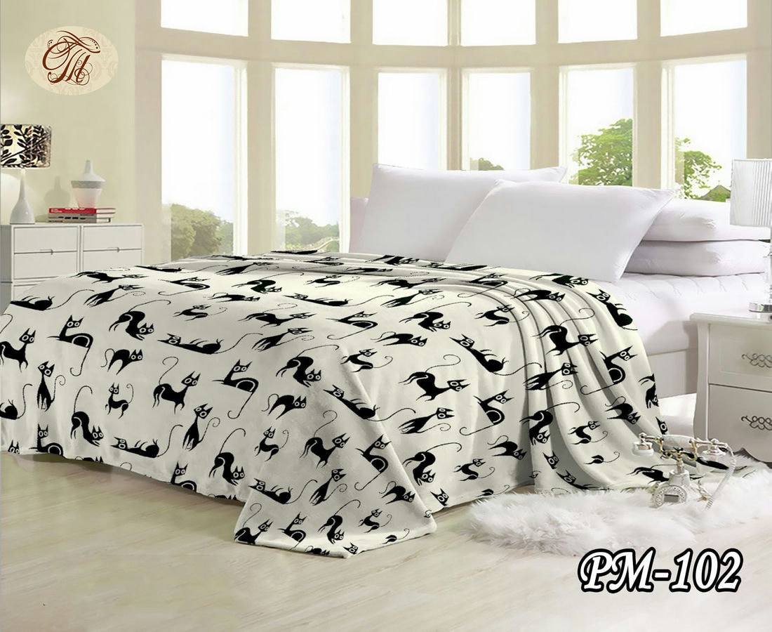 Флісовий плед "Чорний кіт на білому фоні" 220х240 см.