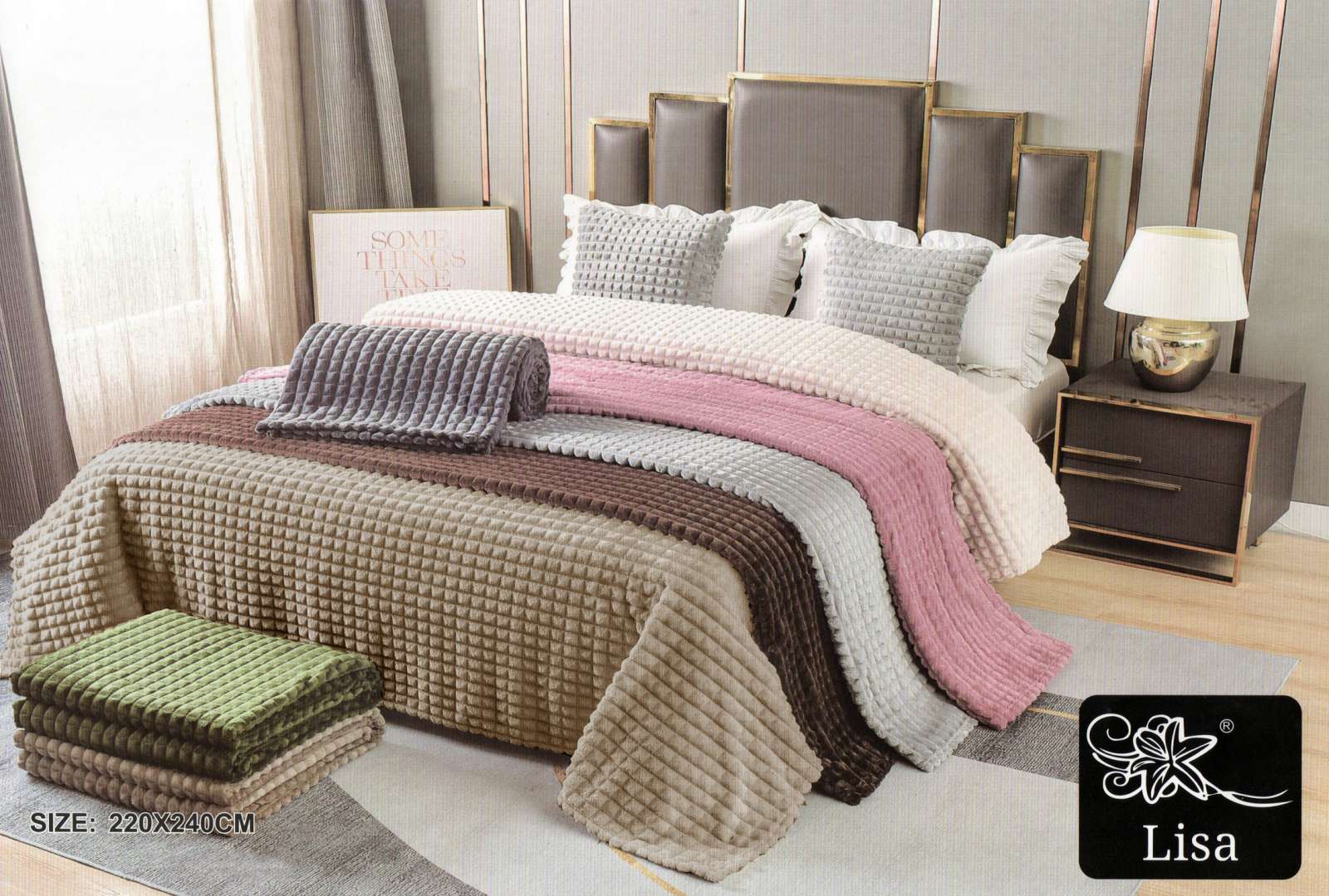 Розміри 220х240 см дозволяють цьому покривалу ідеально поєднуватися з ліжком або диваном, створюючи затишне місце для відпочинку. Дизайн у вигляді кубиків надає покривалу сучасного та геометричного вигляду, додаючи в інтер'єр нотку стилю.