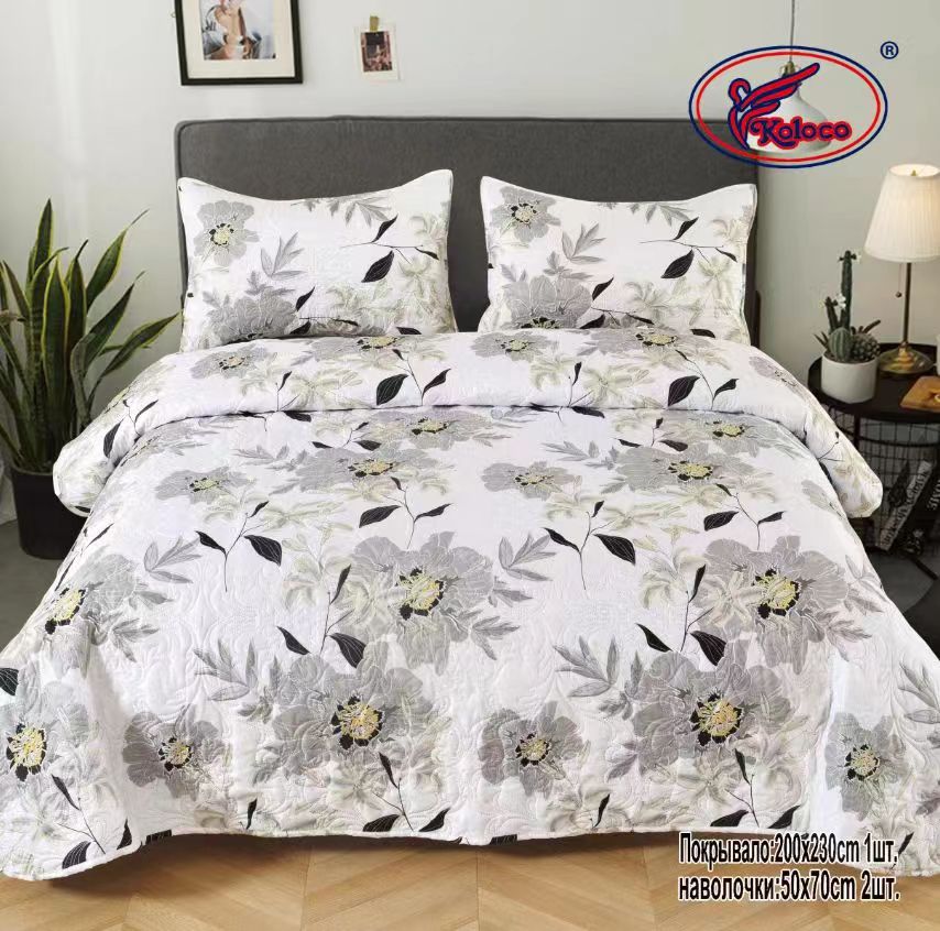 Покривало "Koloco" 200х230 см. + 2 наволочки 50х70 см. "Квіти сірі"