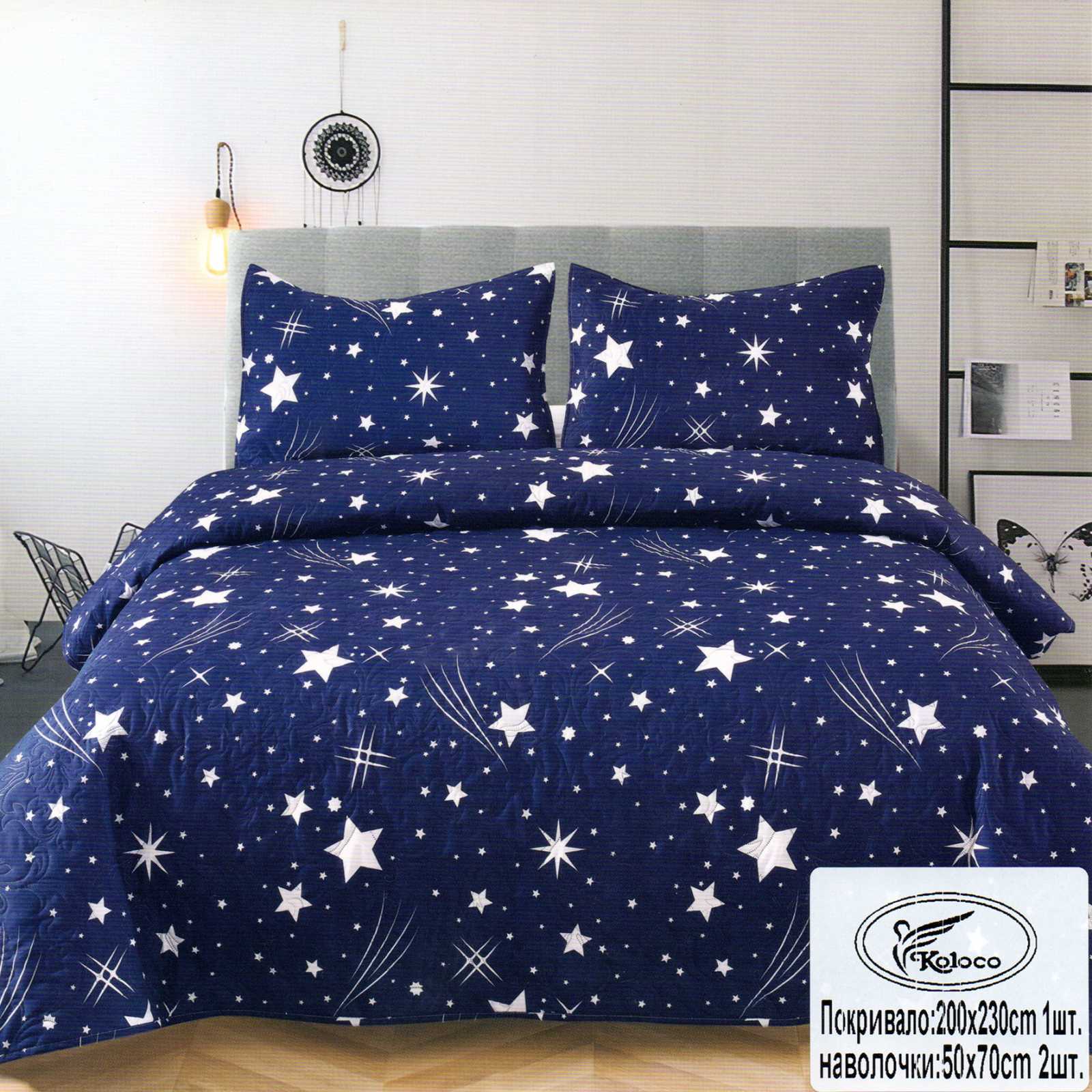Покривало "Koloco" 200х230 см. + 2 наволочки 50х70 см. "Нічне мерехтіння"