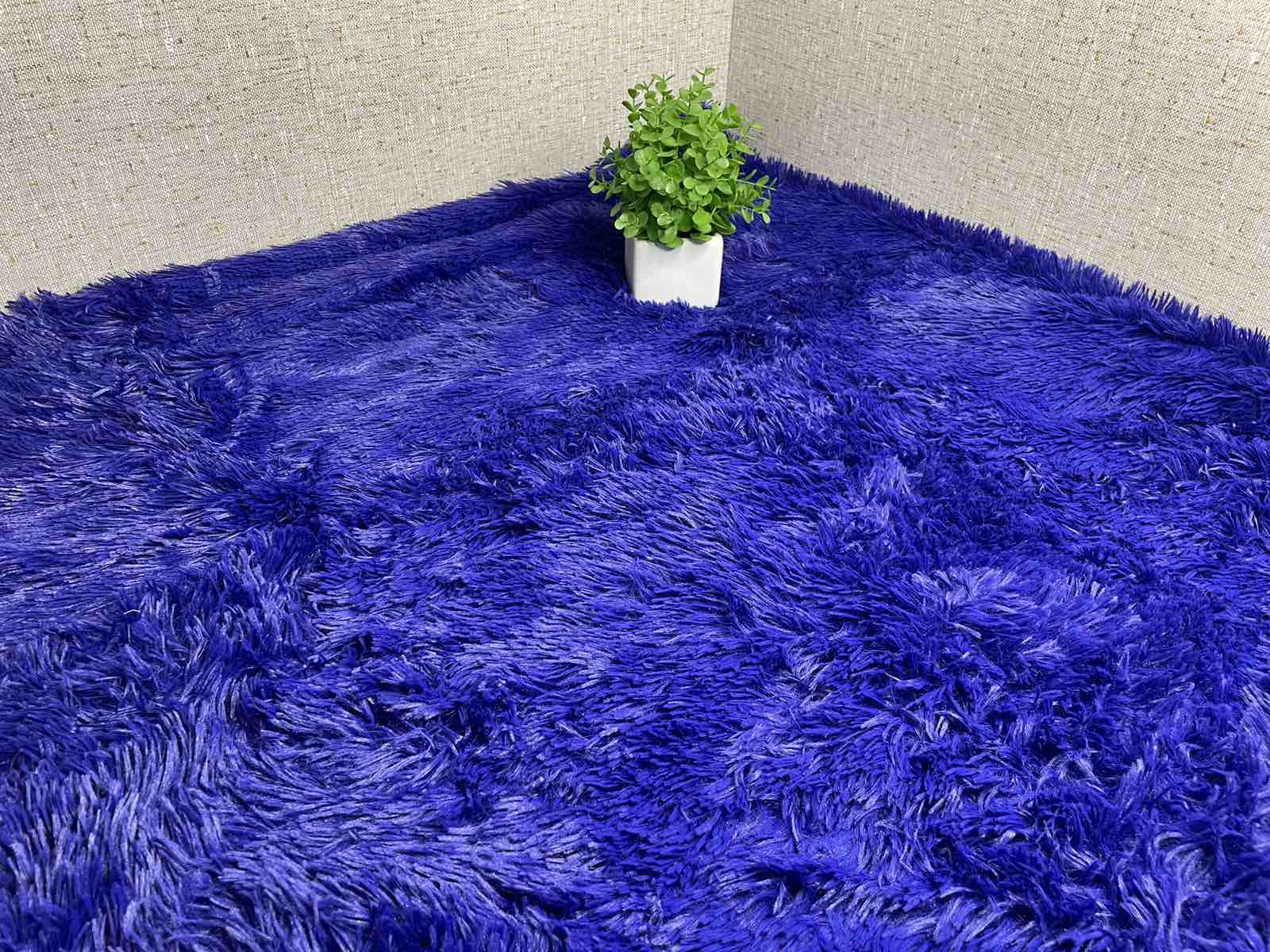 Покривало з довгим ворсом "Koloco" (Синій з бузковим відтінком) 220х240 см.