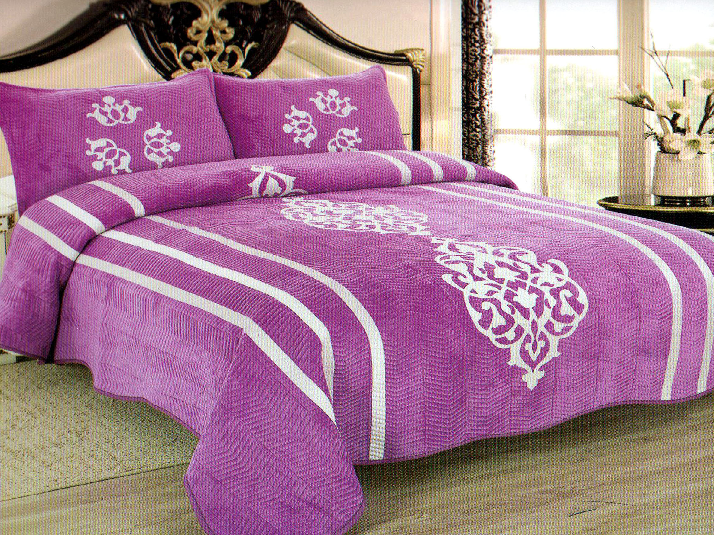 Покривало велюрове "Бузковий" 230х250см. + наволочки 50х70см. 2 шт.
