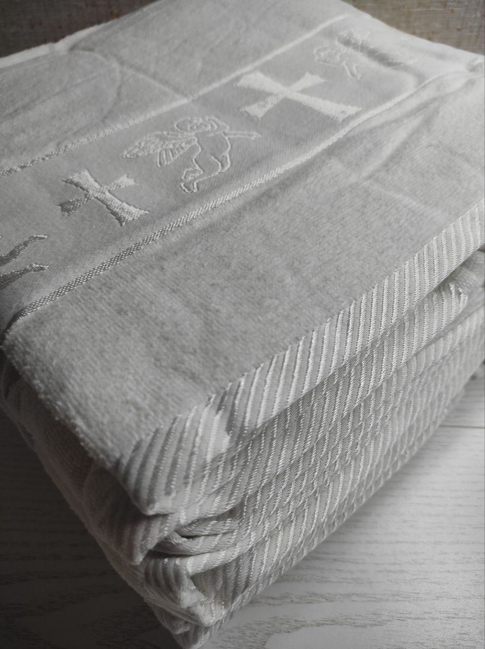 Рушник махровий для хрещення "Срібло" - це вишуканий аксесуар, створений для урочистого моменту хрещення. Володіючи ніжним махровим ворсом і стильним дизайном, він стане прекрасним символом важливої події.