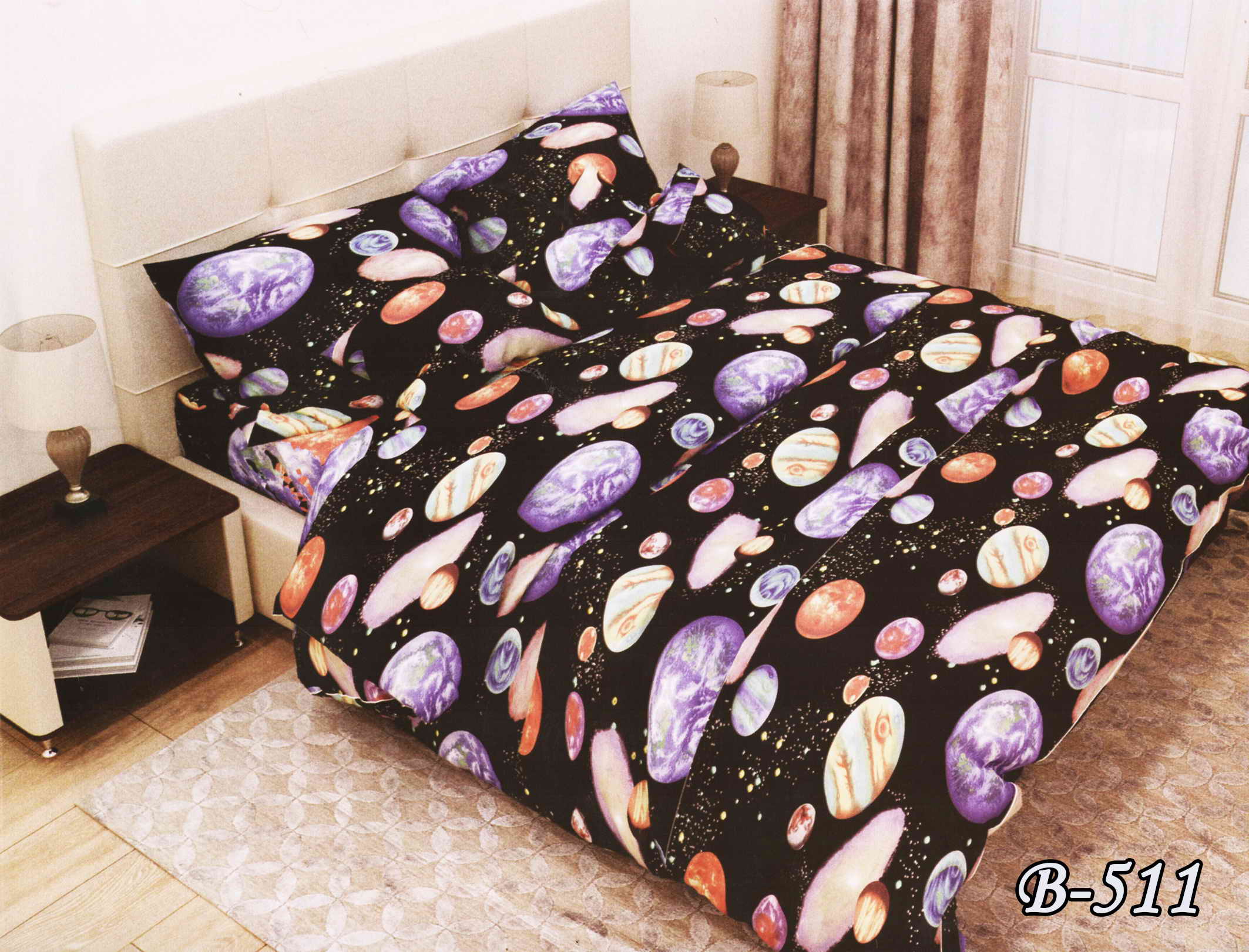 Постільна білизна двоспальна "Планети" B-511