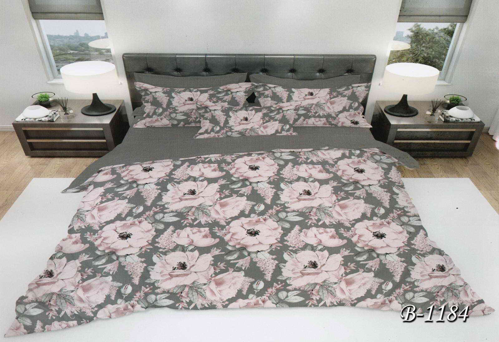 Постільна білизна двоспальна "Рожеві квіти" B-1184