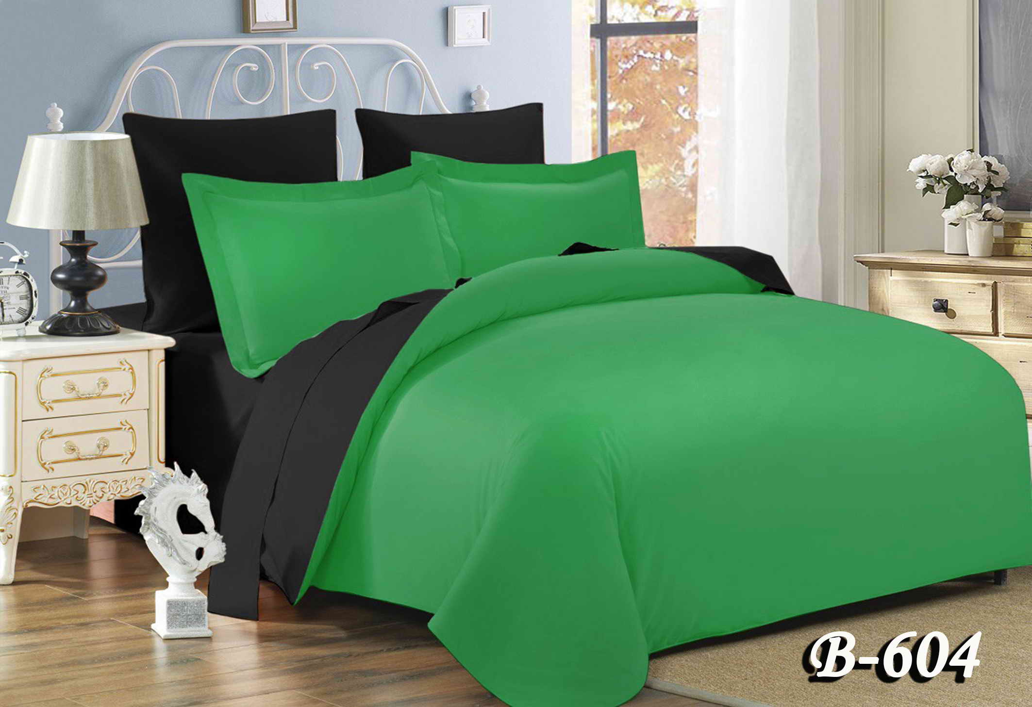 Постільна білизна полуторна "Чорно-зелений" П-604