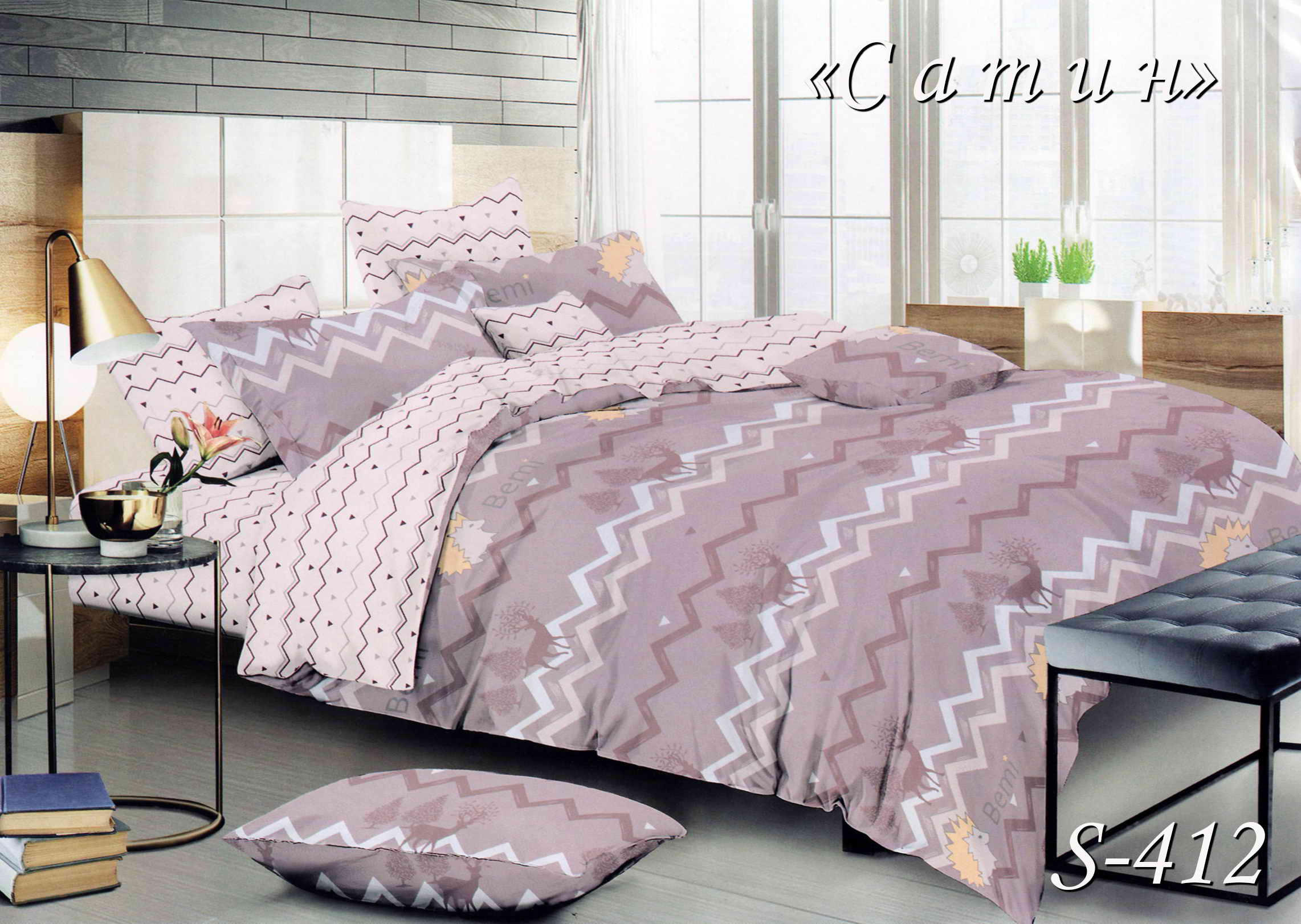 Постільна білизна (сатин) двоспальна "Олені" S-412