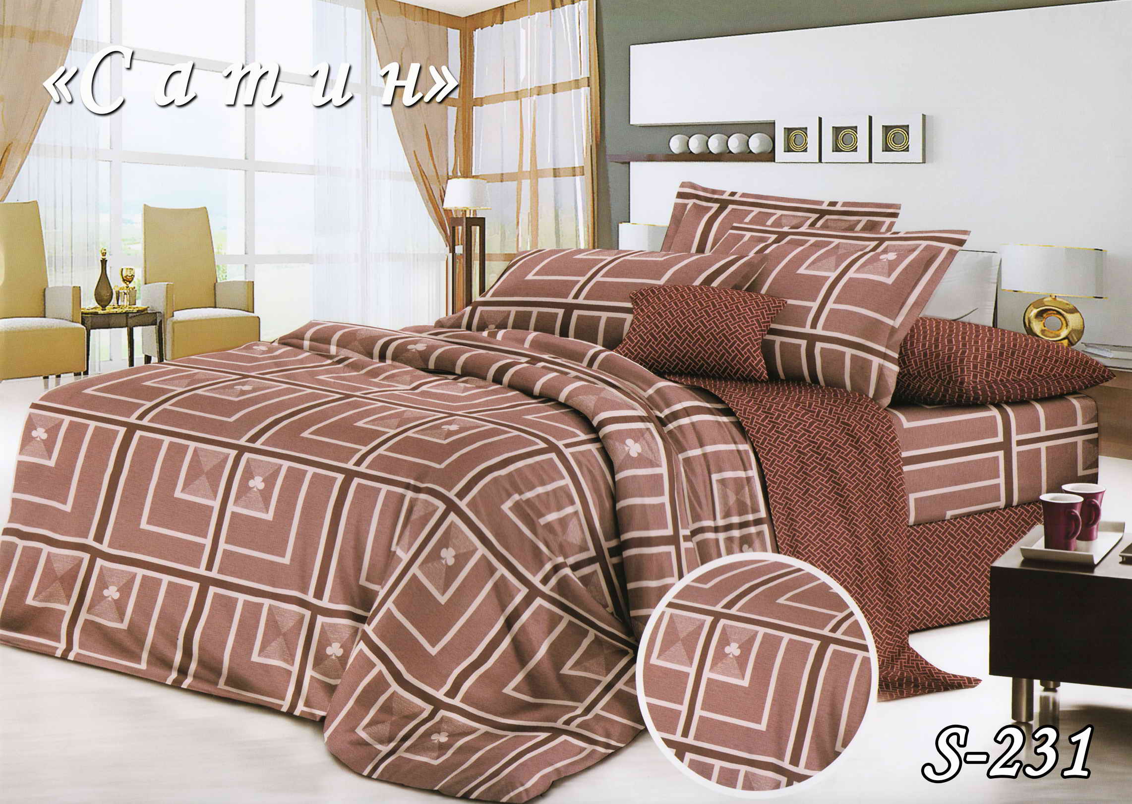Постільна білизна (сатин) євро "Молочний шоколад" S-231