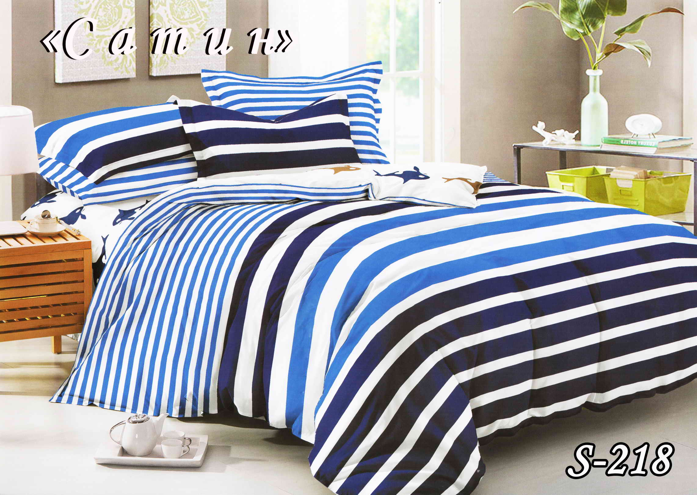 Постільна білизна (сатин) полуторна "Біла смуга" S-218