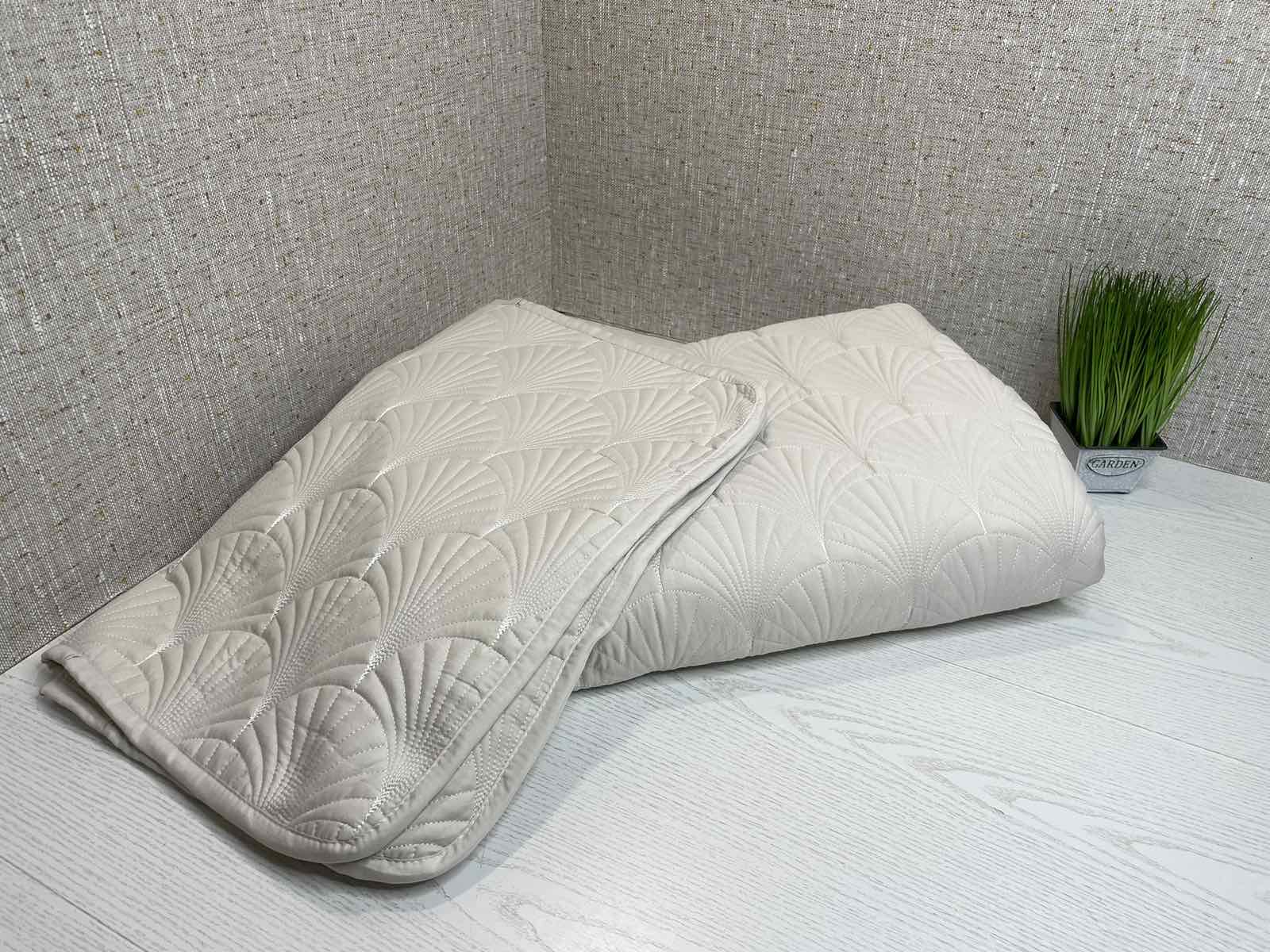 Елегантний Дизайн "Мушля": Стильне стібкування, натхненне природою, надає покривалу вишуканого вигляду, роблячи його невід'ємним елементом декору вашої спальні.