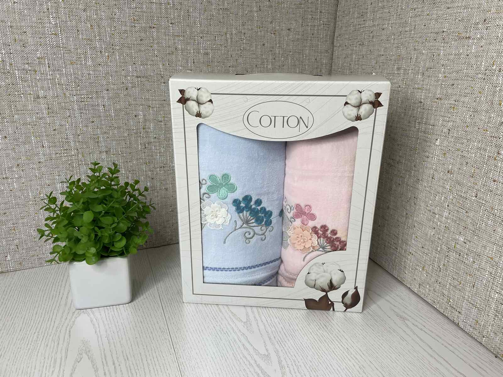 Набор махровых полотенец (2 шт.) "Букет голубой-розовый"