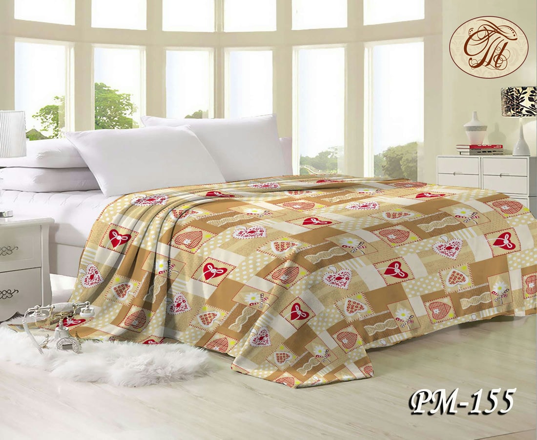 Флисовый плед"Сердечки на бежевом" 200х220 см.