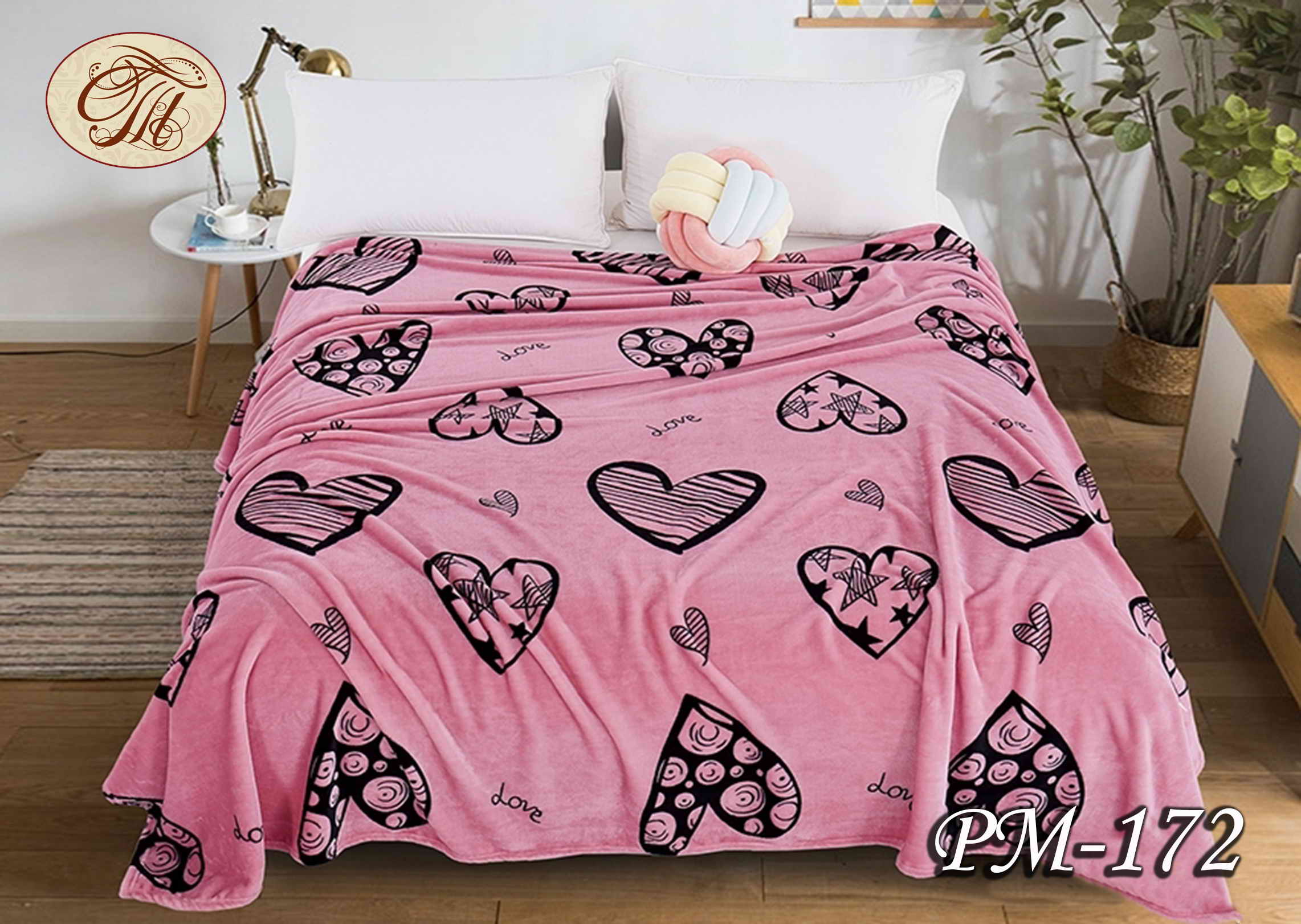Флисовый плед "Сердечки на Розовом" 200х220 см.