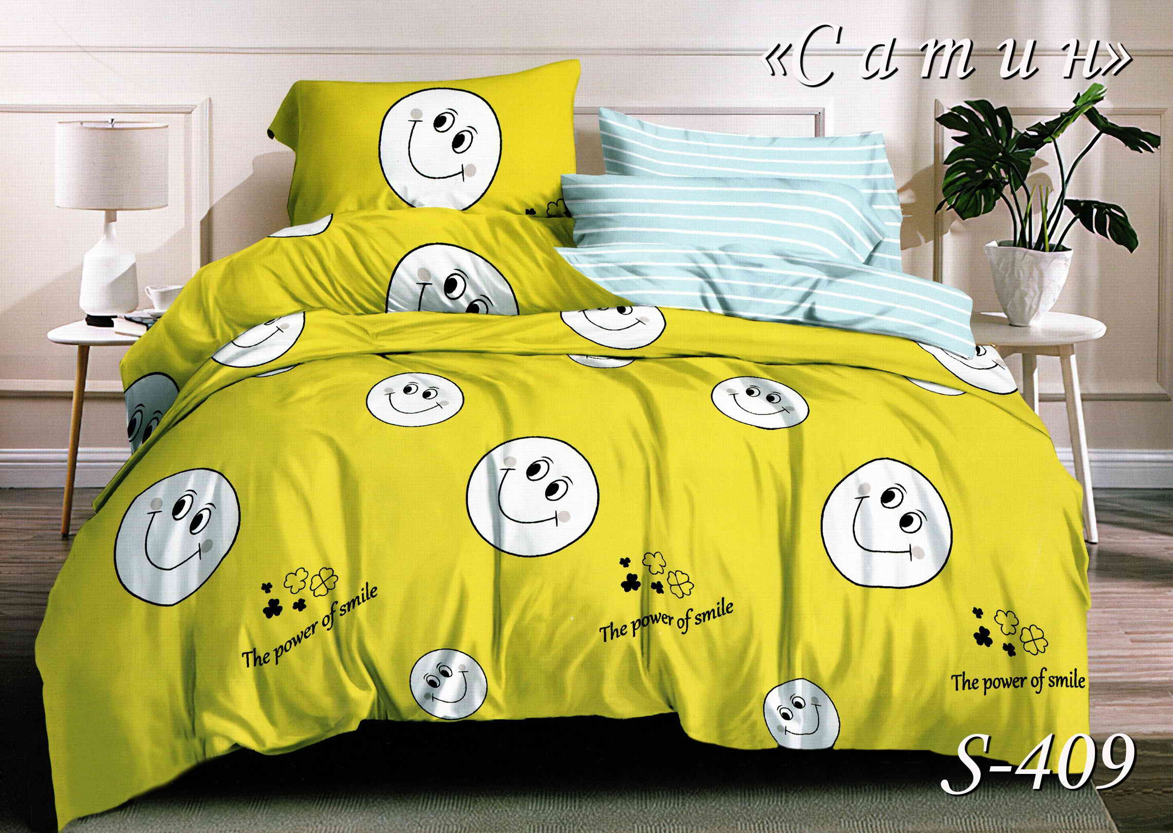 Постельное белье (сатин) двуспальное "Смайлик" S-409