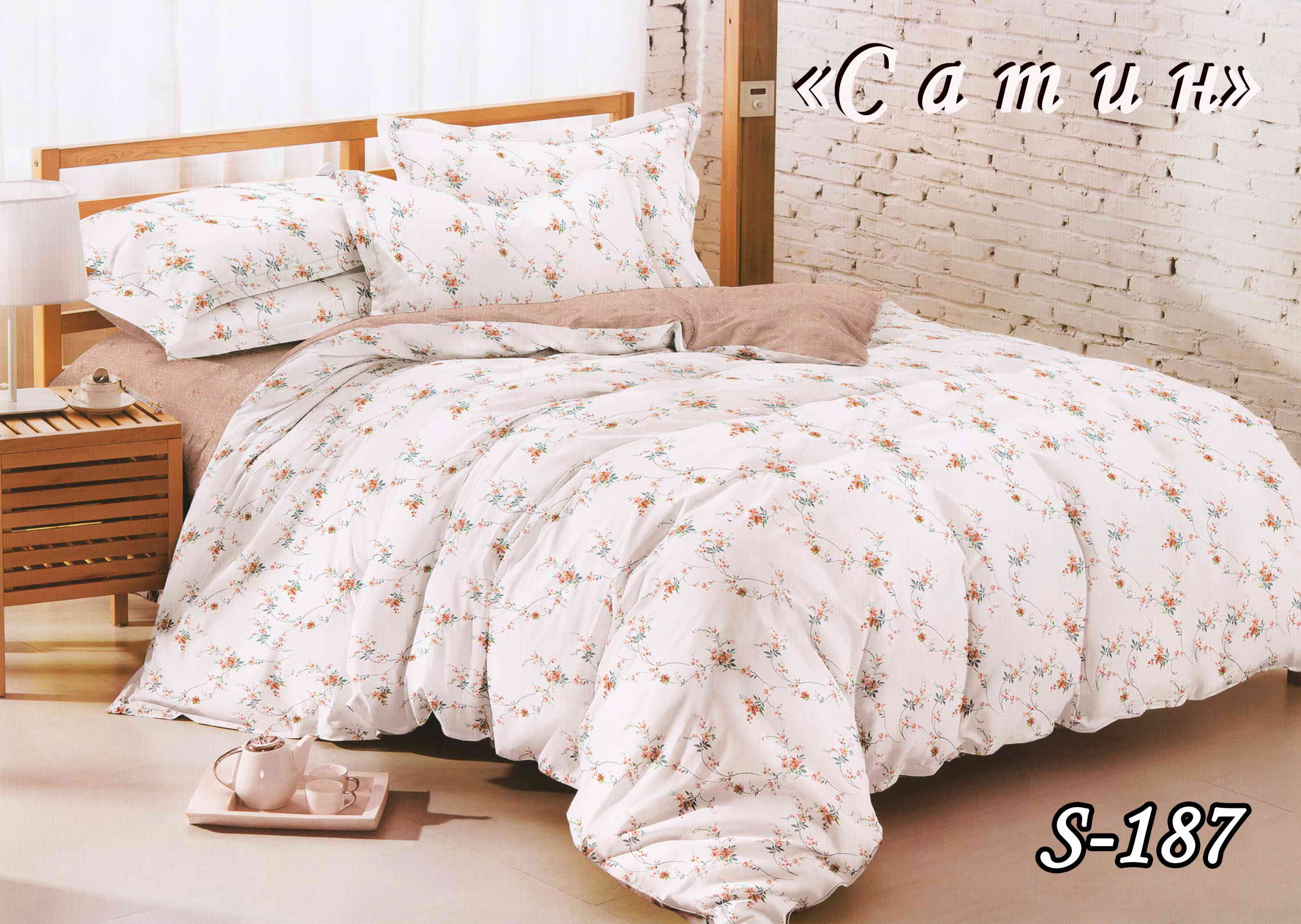 Постельное белье (сатин) евро "Цветочный-сад" S-187