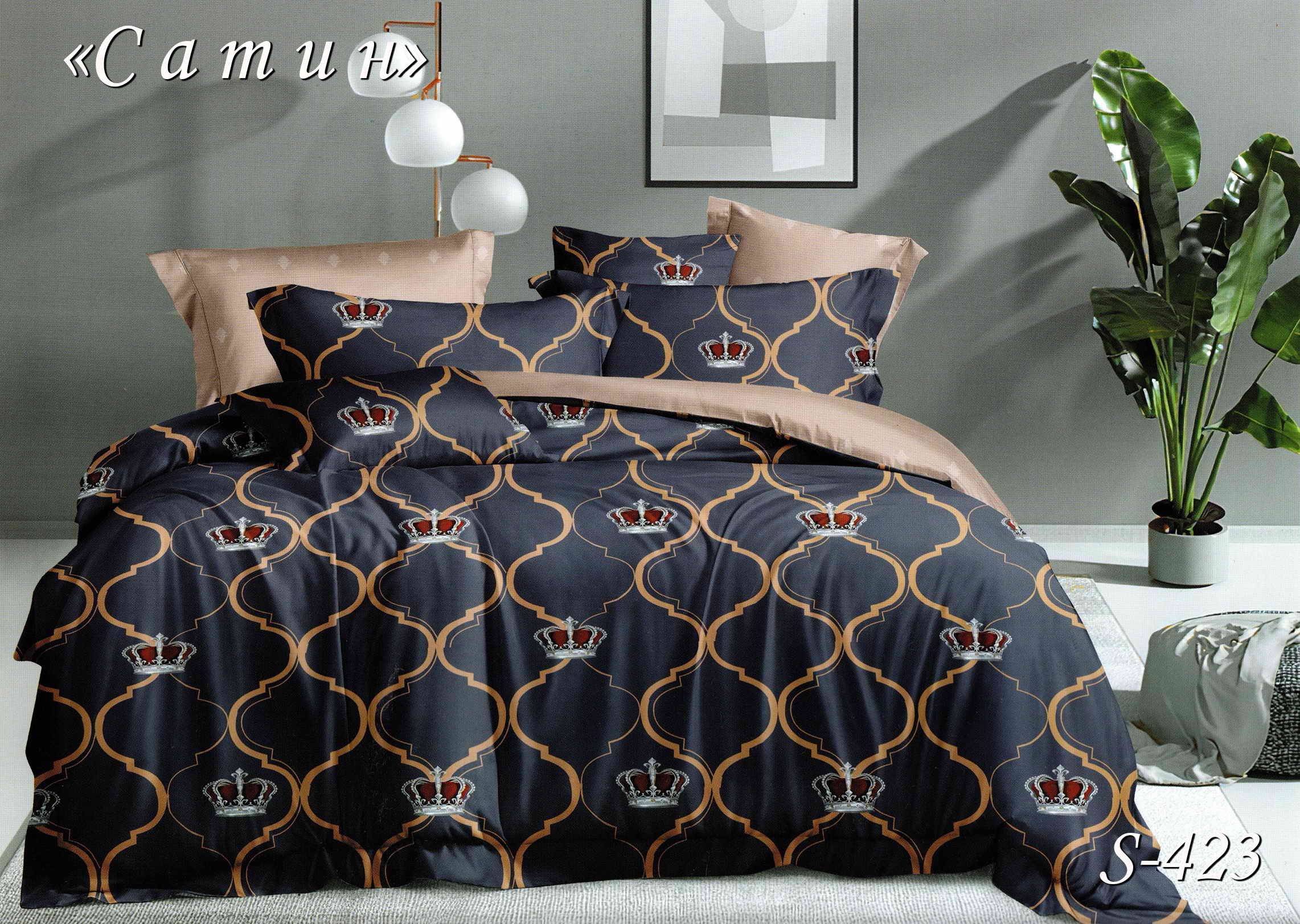 Постельное белье (сатин) семейное "Корона" S-423